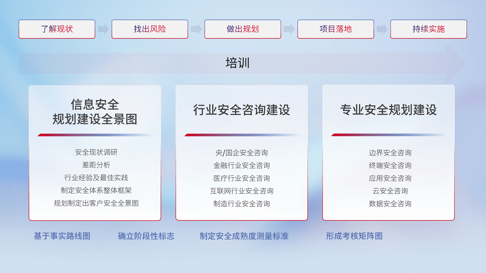梳理客户信息安全现状调研、、、差距分析结果,,,结合行业先进经验及最佳实践,,制订客户的信息安全管控体系总结架构,,,最终形成一个完整的客户信息安全规划与建设的全景图。。