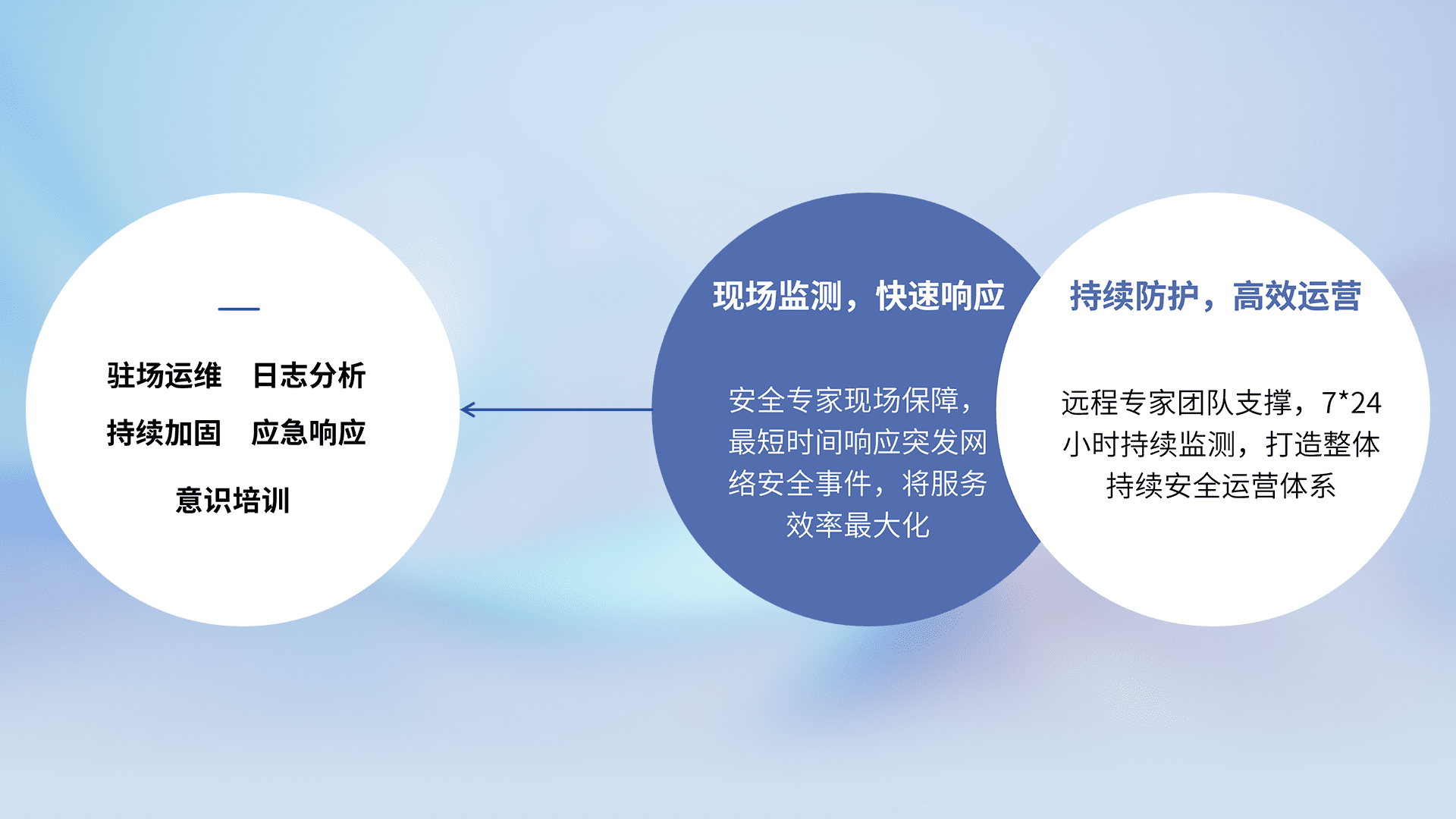 针对客户行业特性,,,,提供专属的一站式安全管理服务,,帮助客户全面感知网络空间威胁,,,通过安全专家的线上、、、线下防护支持,,实现风险闭环,,,将安全保障常态化,,,,为客户打造常态化安全运维运营服务。。。